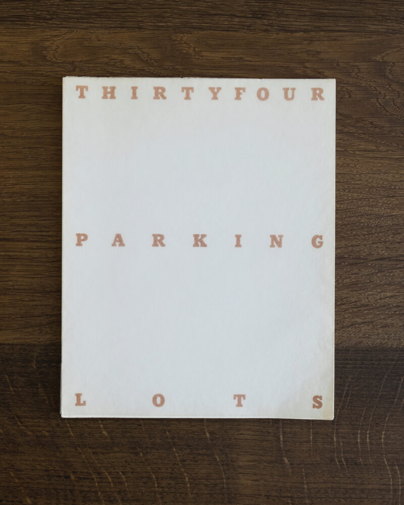 'Thirtyfour Parking Lots in Los Angeles' by Ed Ruscha. Ed Ruscha's photos of Los Angeles parking lots showcase the abstract and at the same time geometric patterns that mark the Californian city. This is one of the rare first prints of the booklet that was published in 1967.