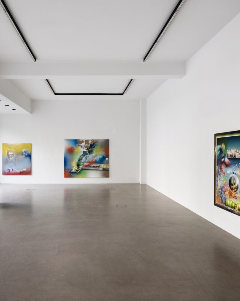 ‘Élysée’ is the French word for the Elysian Fields, the place of the blessed dead in Greek mythology. In other words, a beautiful place, even paradisiacal, “not unlike the ANDREAS MURKUDIS stores,“ Bernhard Martin says. The focus of his exhibition ‘Grand Élysées’ at STORE 77, however, were the ‘dumbasses‘ that inhabit the Élysée that is our world – and fall through its cracks. In the paintings on display, the German artist explored those members of our society who reject the status quo in favor of a more duplicitous existence. The ones who find loopholes in the rigid structure of our Western culture, defying its quanitfiable nature. Bernhard Martin attended the opening event.