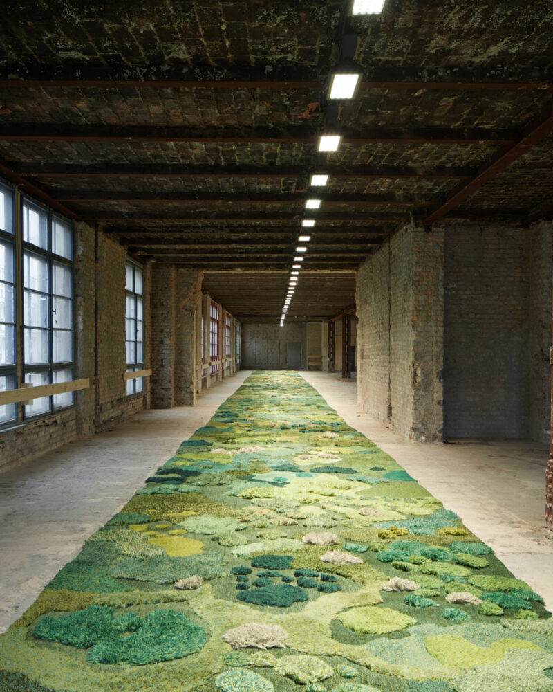 A 48-meter long magical tufted wool carpet created by Argentine artist Alexandra Kehayoglou for the DRIES VAN NOTEN Spring / Summer 2015 runway show adorned the corridors of Berlin's historic department store Hertzog, as part of a special presentation organized for Gallery Weekend Berlin 2015. The show was art-directed by Andreas Murkudis and Dries Van Noten, and sponsored by Audi City Berlin. The opening night was accompanied by a special performance by the Belgian band Oscar and The Wolf, whose bewitching music also played during the original runway show.