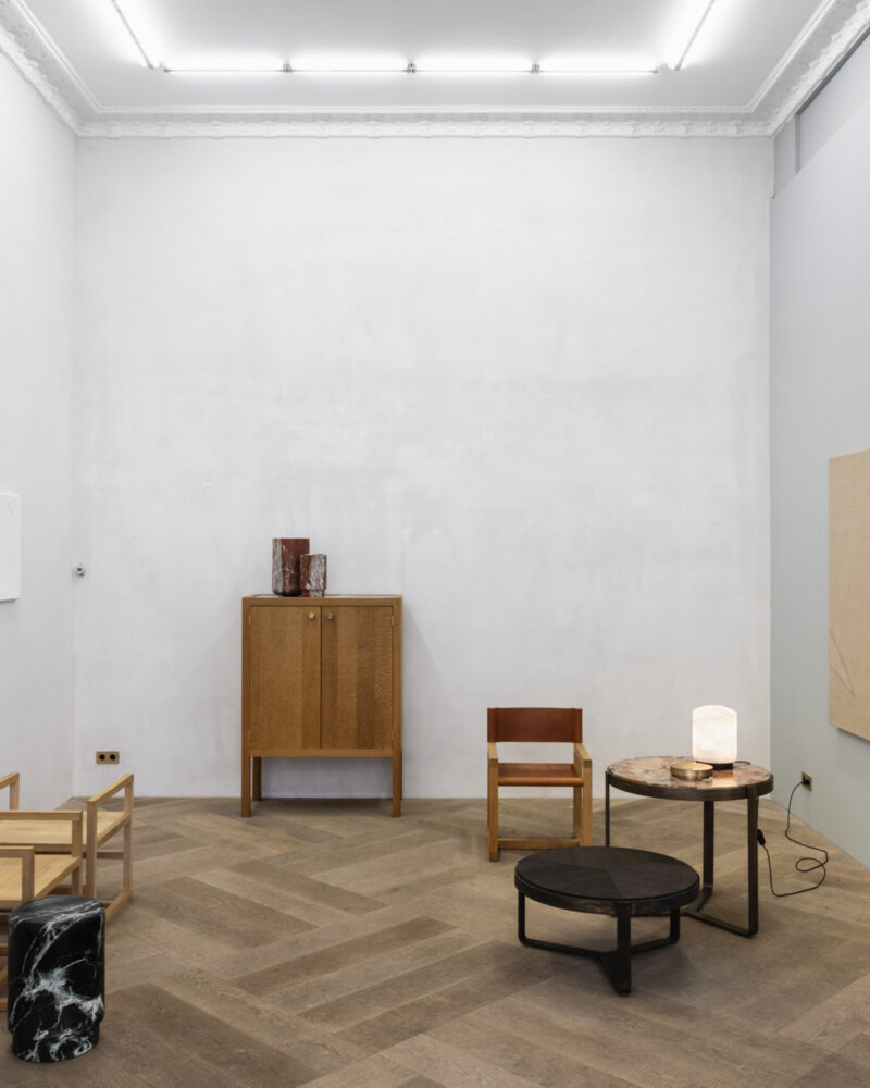 In former STORE 98, Belgian designer MICHAËL VERHEYDEN exhibited his object- and furniture-designs made of noble materials, such as marble, leather, bronze and oak. The objects on display ranged from luxurious marble vases, bowls and lamps alongside wooden tables, cabinets and armchairs upholstered with leather. The Belgian designer’s motive is to blend serene shapes and precious materials into refined creations. Michaël Verheyden, a longtime collaborator of Andreas Murkudis, attended the opening event.