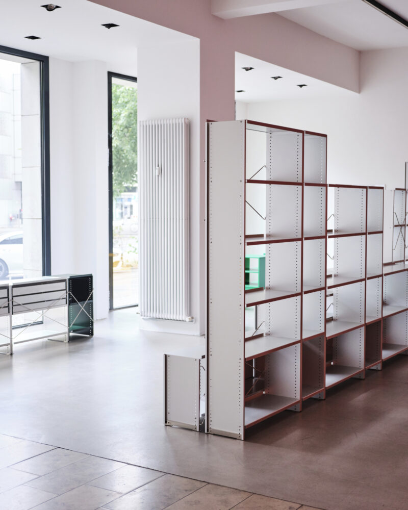 ANDREAS MURKUDIS launched Swiss heritage brand LEHNI in STORE 77 on July 1st. The installation comprised LEHNI’s most iconic designs such as Andreas Christen’s Aluminium Shelf from 1964, Georg Gisel’s Wall/Ceiling Lamp from 1976, the Side Table from 1979 – a LEHNI-own design – as well as four pieces from the Donald Judd x LEHNI collection. A limited number of Side Tables in three colorways with the ANDREAS MURKUDIS logo engraved into the side were produced specifically for this exhibition. Archival photos by Doris Lehni Quarella that capture milestones from the company’s rich history were also on display.