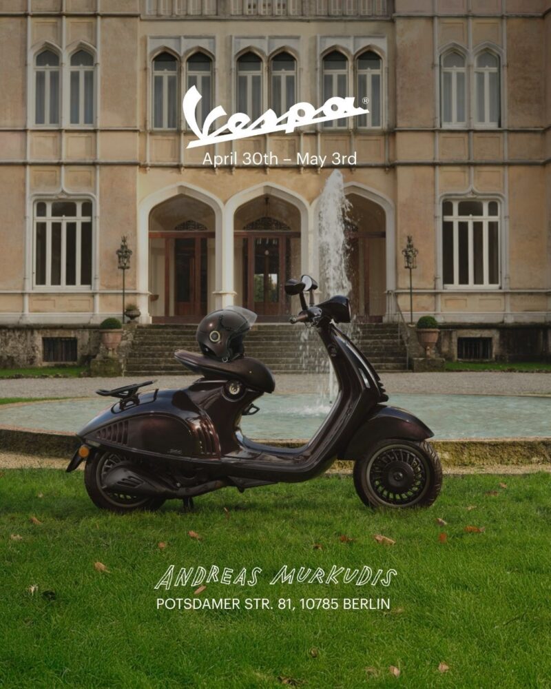 This year, for Berlin Gallery Weekend, we are thrilled to collaborate with VESPA on a project that brings together movement and the experience of art in the city. At ANDREAS MURKUDIS, art has always been part of what we do and love – it is present in our spaces, shapes the way we work, and extends beyond the store into the streets around us. Surrounded by dear neighboring galleries and longstanding relationships with artists, the city itself becomes a place of continuous exchange for us.